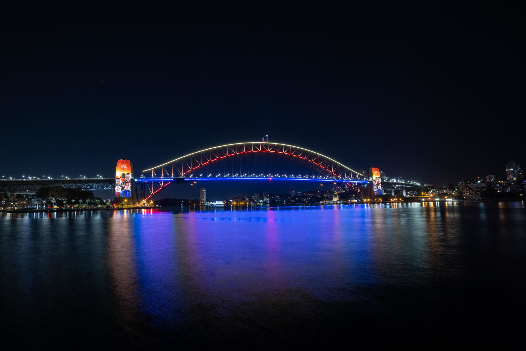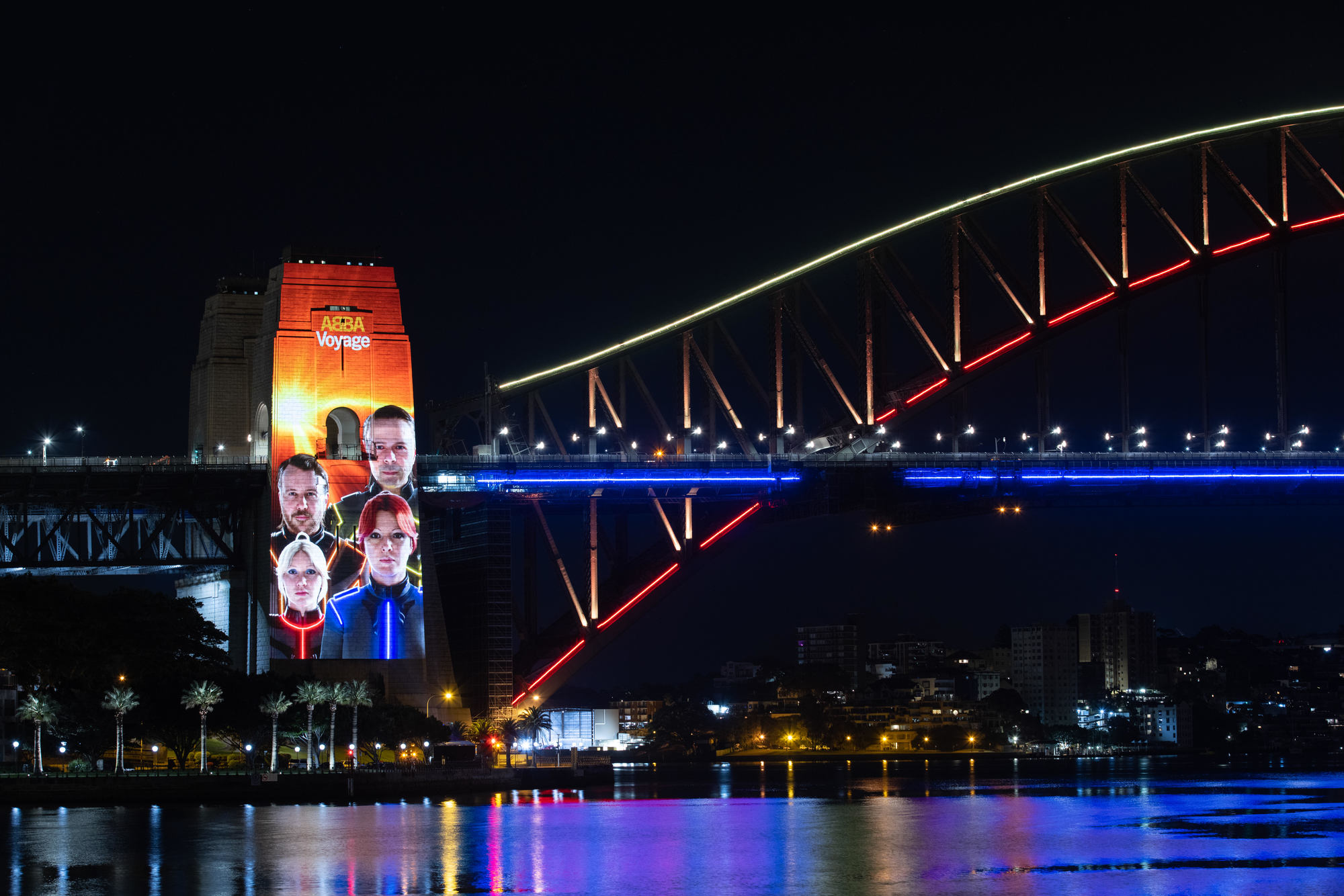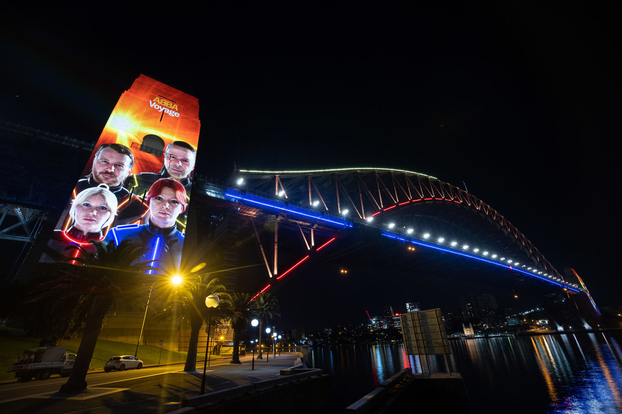 Striking avatars of Agnetha, Björn, Benny, and Anni-Frid illuminated the Pylons of the iconic Sydney Harbour Bridge accompanied by a dazzling light display across the Bridge arch.