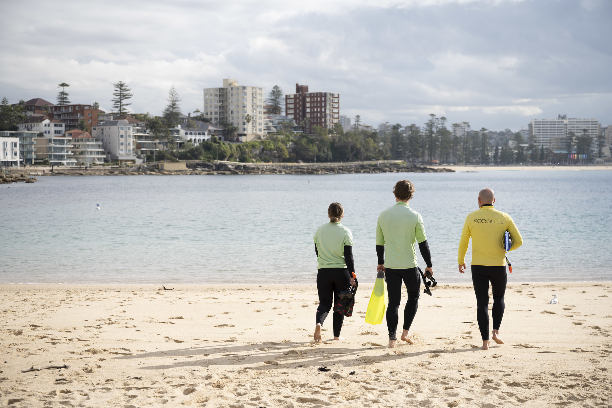 An experience with the local wildlife will deepen that connection even further – at Cabbage Tree Bay, you can dive headfirst into Manly’s saltwater lifestyle on an Eco Treasures snorkelling tour of the aquatic reserve. Renowned for its diverse marine life, the bay starts at the southern end of Manly Beach and wraps around rocky shores and golden beaches to Shelly Beach. Here you’ll find more than 150 fish species, including the endangered blue grouper, giant cuttlefish and weedy sea dragons, with your local guide sharing stories and highlights along the way.