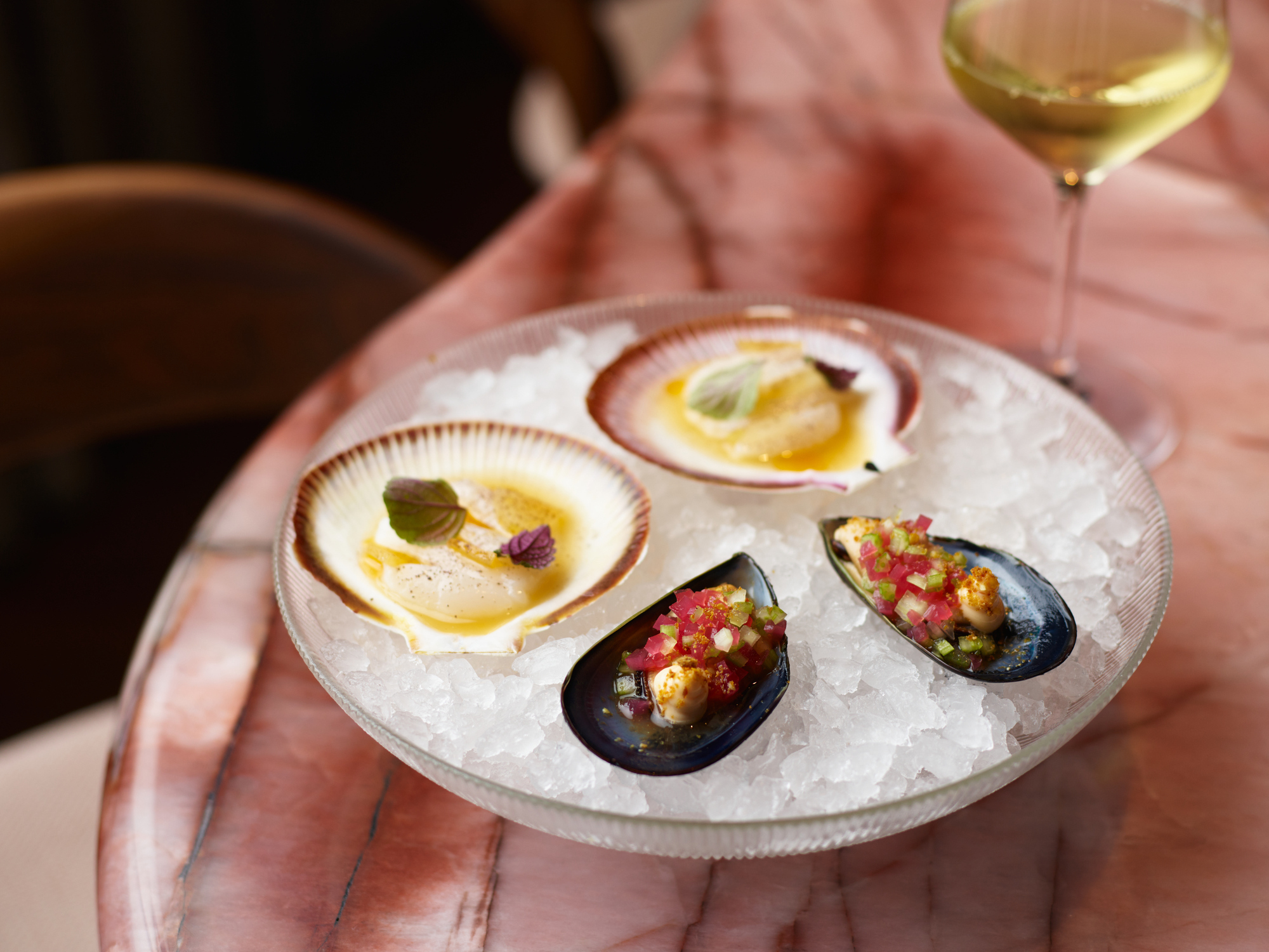 Abrolhos Scallops and Spring Bay Mussel Catalana at Lana, Hinchcliff House in Sydney