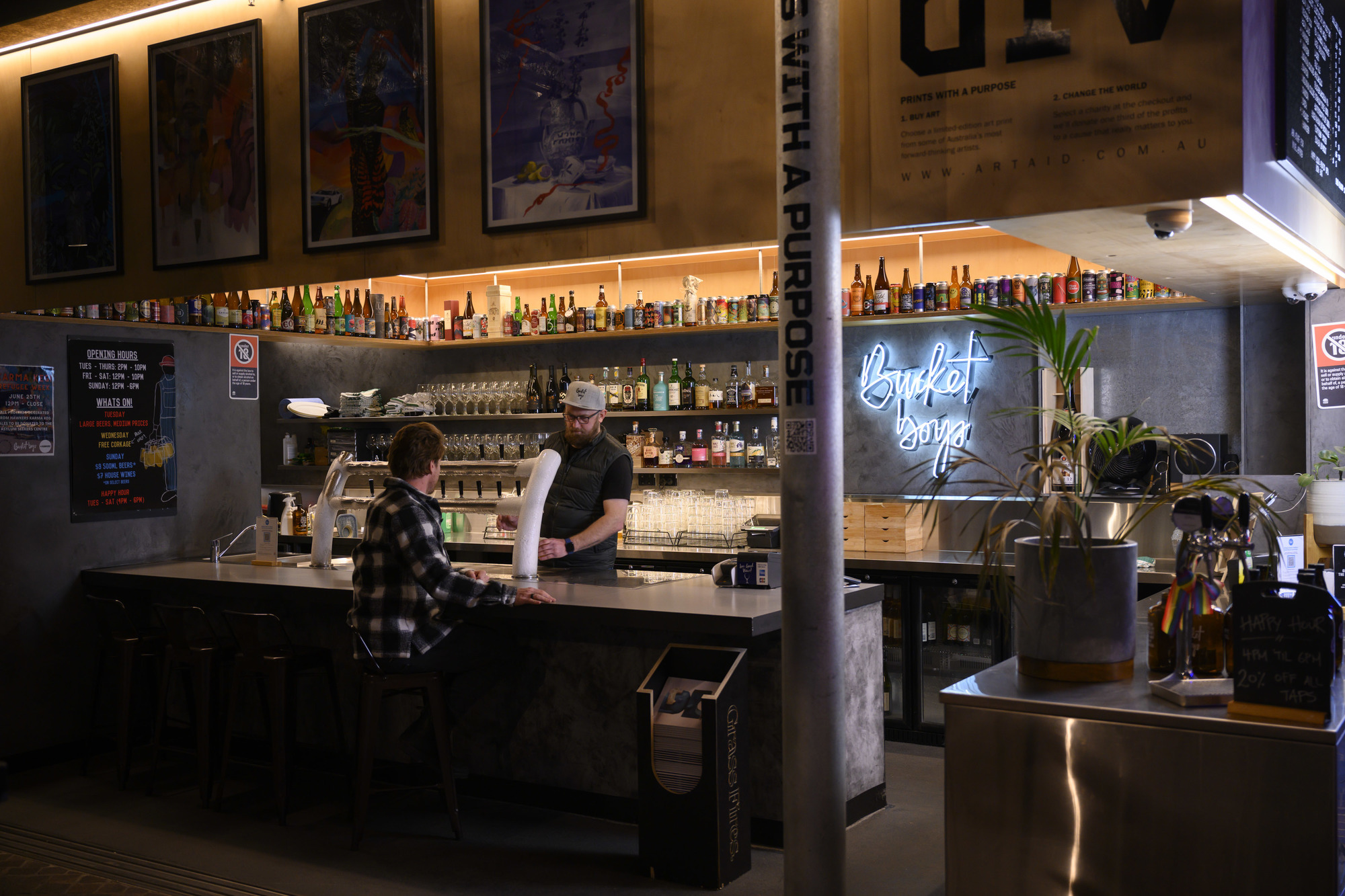 Hayden Quinn with Jonathan Hepner at Bucket Boys in Darling Square