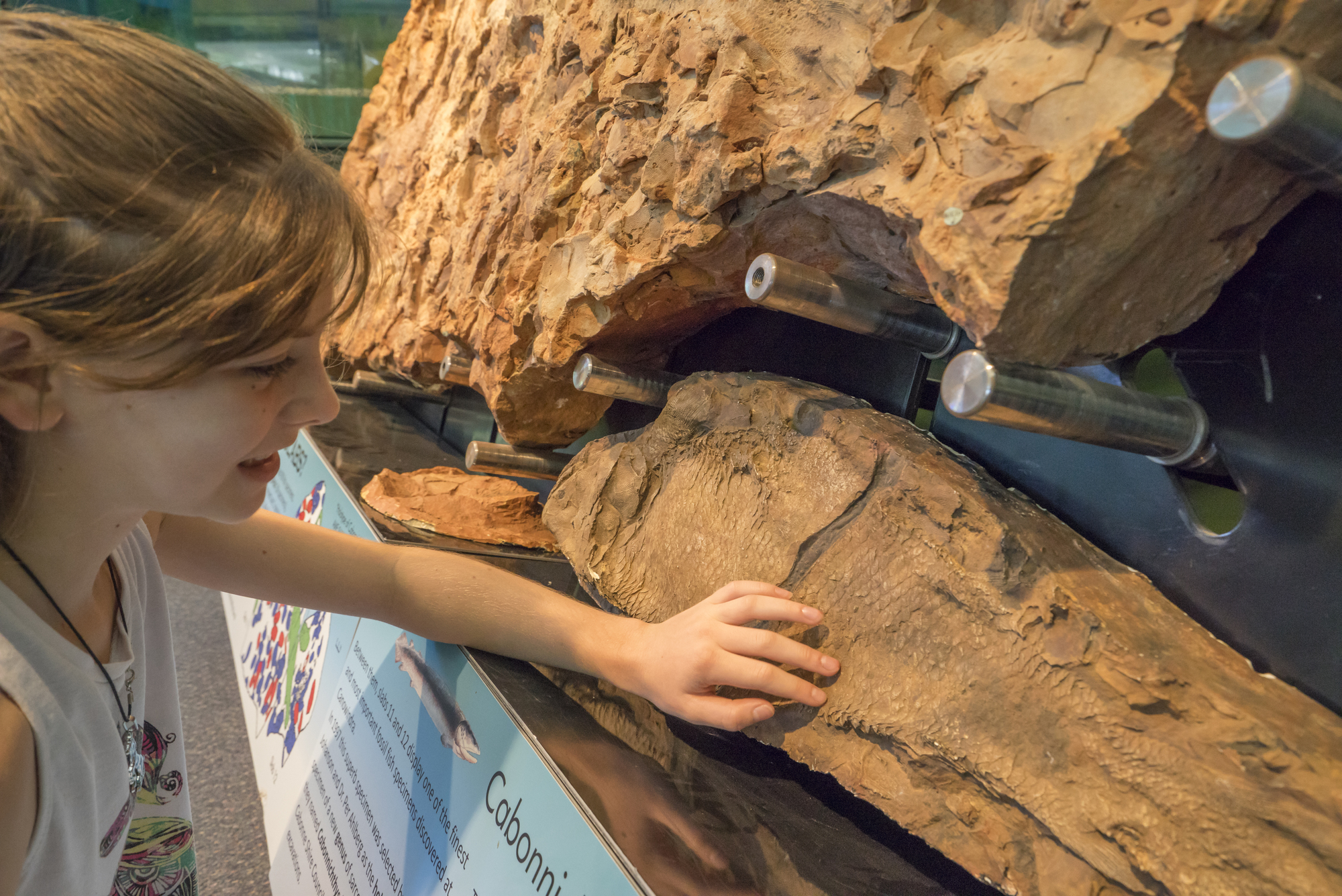 Young girl enjoying a visit to the Age of Fishes Museum, Canowindra.