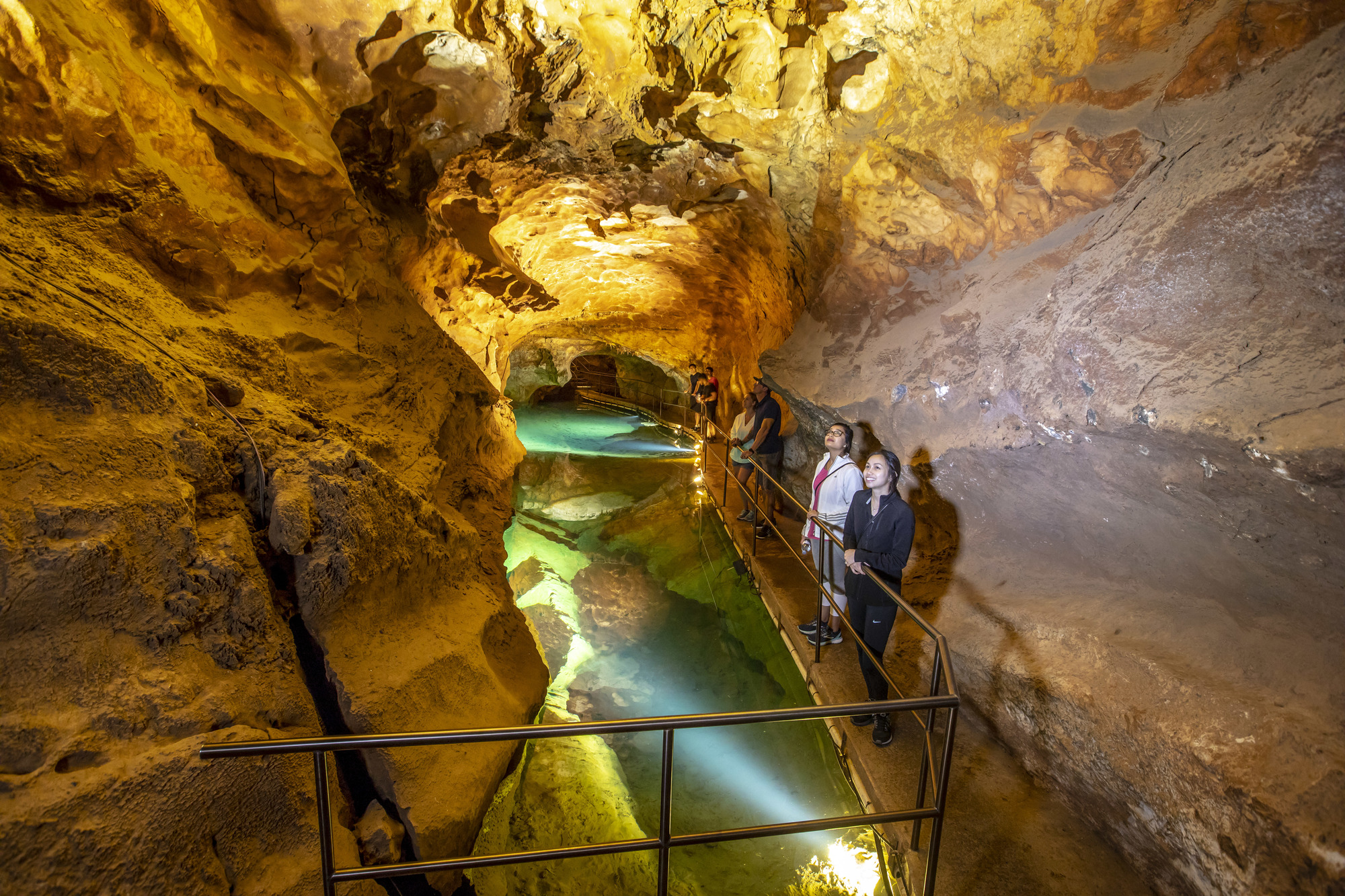 Small group enjoying a tour through the River Cave system at Jenolan Caves in the Blue Mountains.