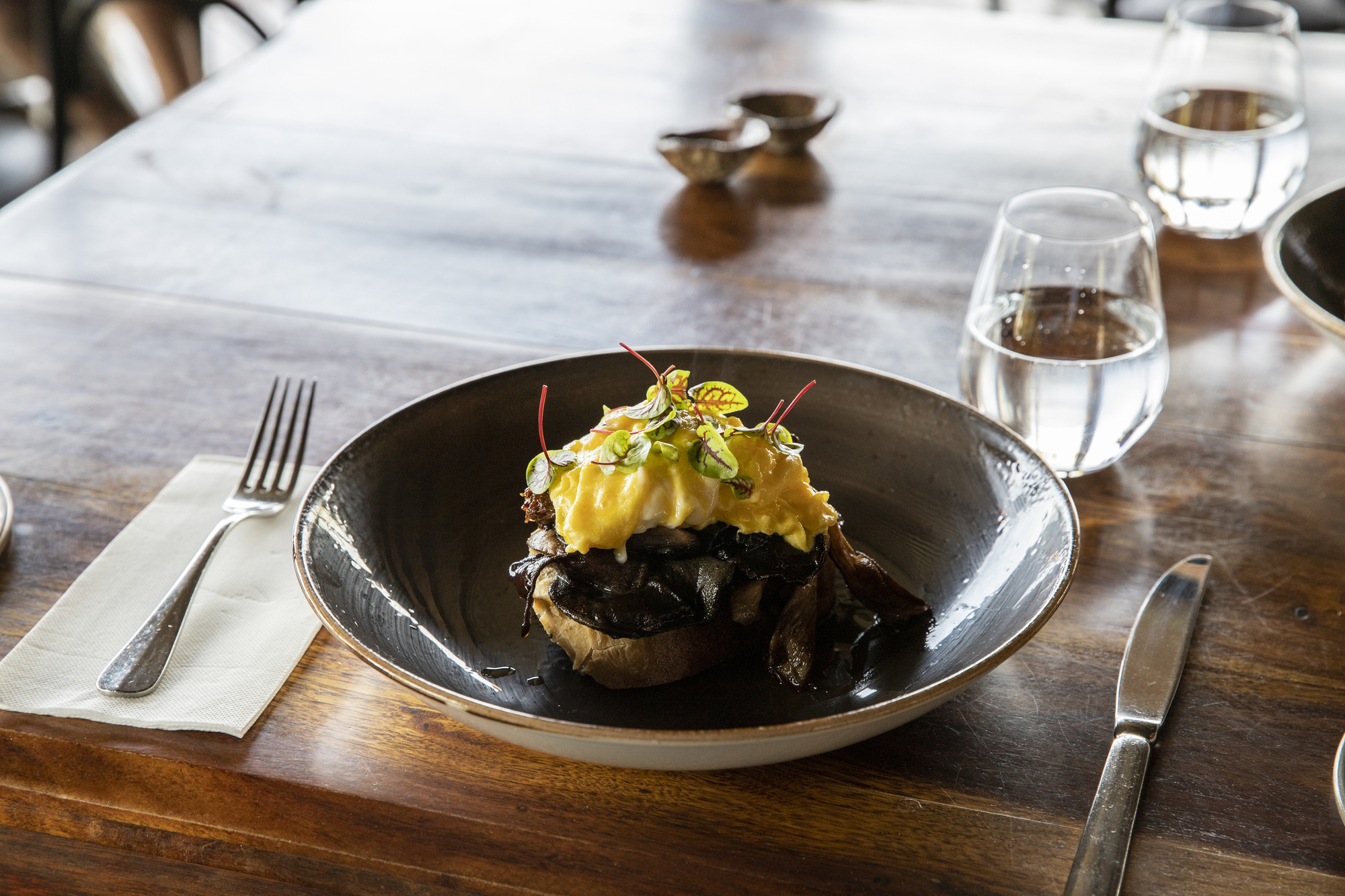 Couple enjoying a relaxing breakfast in Alby + Esters, Mudgee.