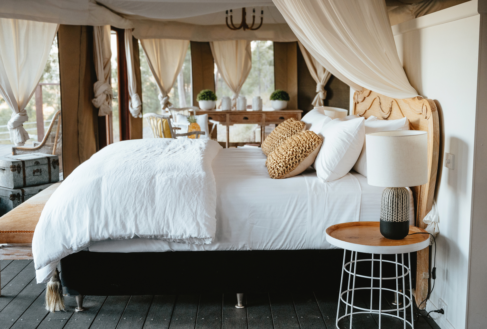 Luxury accommodation is taken to a new level at Boydell’s African Safari Tent in the picturesque Hunter Valley. Setagainst the backdrop of rolling vineyards and a vast rural landscape, the safari tent offers guests a private romanticgetaway and ‘off-grid’ glamping experience like no other.