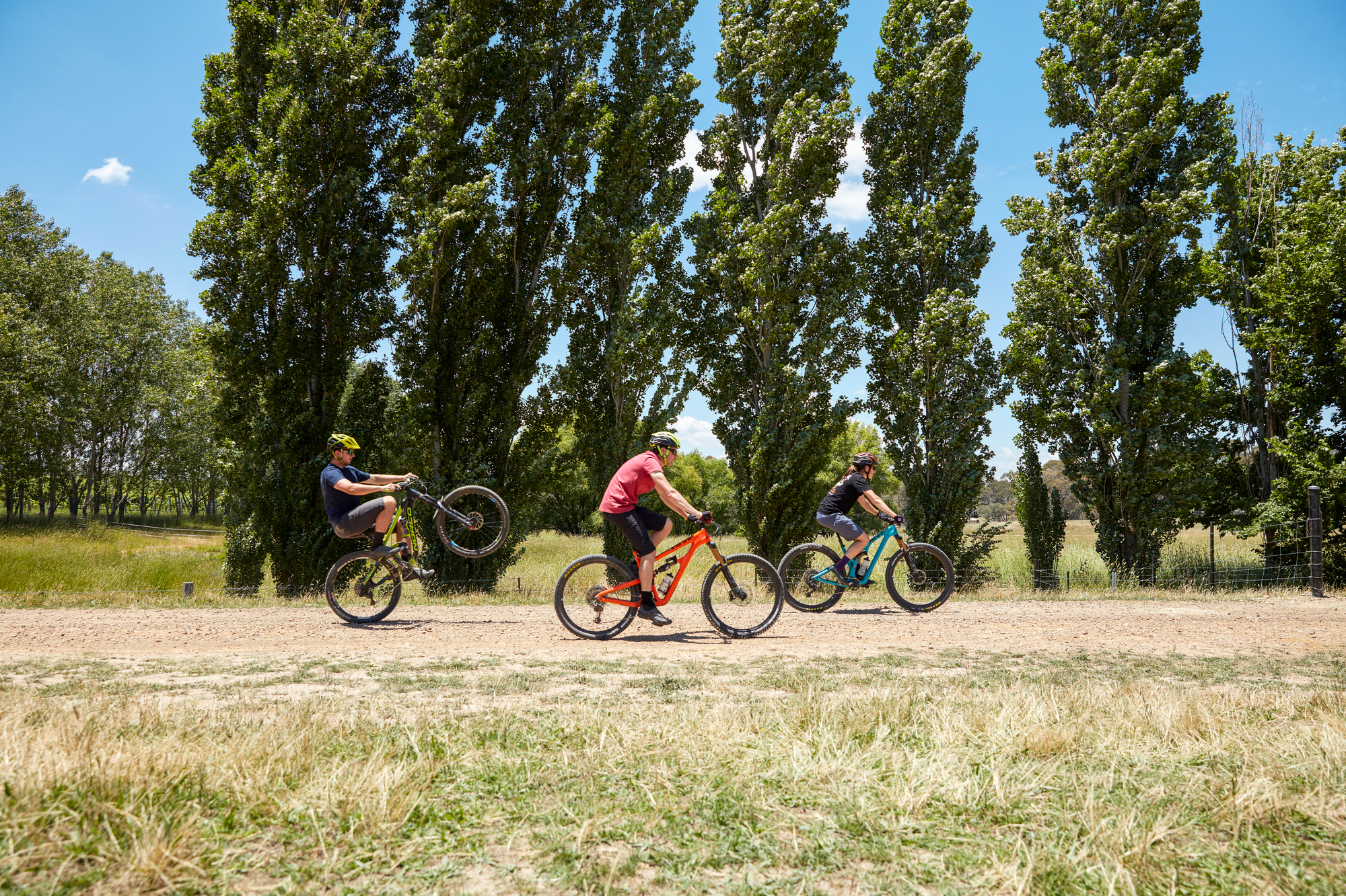 Friends enjoying the scenery at Heifer Station, Orange on hired bicycles.