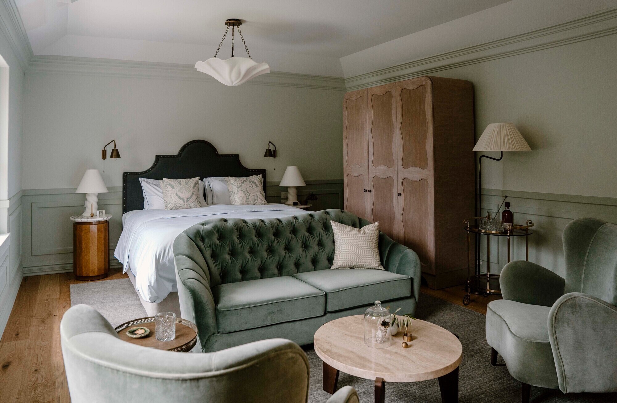 A suite at Osborn House, featuring bespoke bedheads and custom joinery.