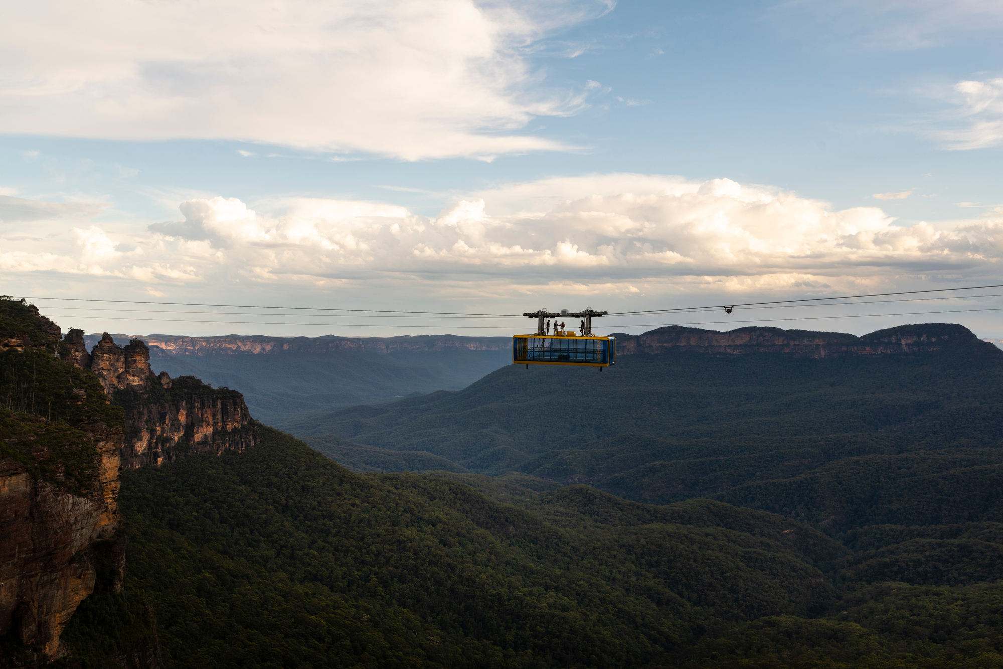 Scenic World’s 270-metre-high cableway that flies across the Jamison Valley in the Blue Mountains has launched an even more heart-pumping experience: Beyond Skyway, where harnessed guests can climb on the rooftop of the cable car for uninterrupted 360-degree views and sky-high refreshments.