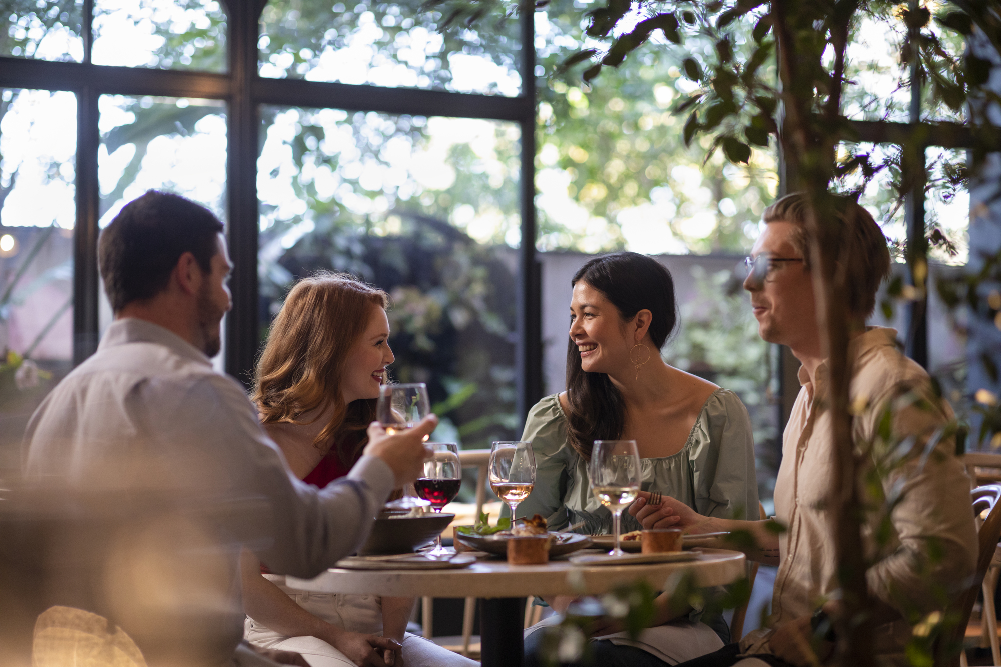 Friends enjoying Middle Eastern cuisine at Nour Restaurant, Surry Hills.