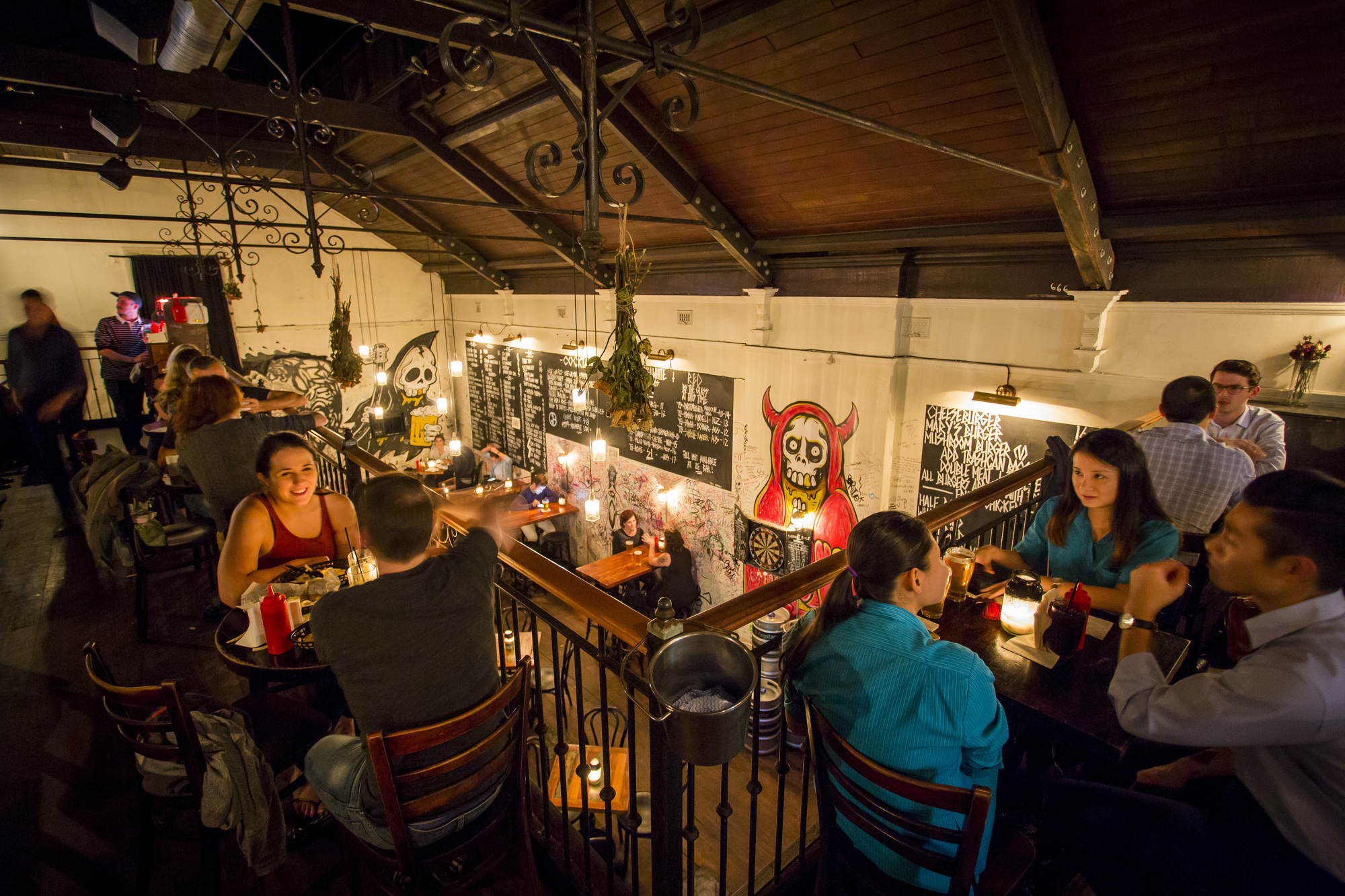 Diners enjoying food and drink at Mary's Newtown, Newtown.